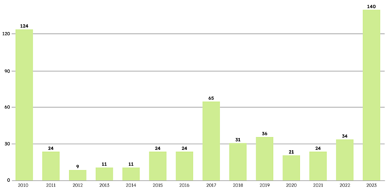 Il grafico mostra il numero di casi denunciati alle persone di contatto delle commissioni di esperti della Chiesa per ciascun anno. Oltre la metà dei casi denunciati finora sono avvenuti prima del 1980. Nel 2010 questo fenomeno ha ottenuto una forte attenzione mediatica dovuta ai sensazionali rapporti pubblicati in Svizzera e all’estero, il che spiega almeno parzialmente l’elevato numero di denunce rispetto agli anni successivi.